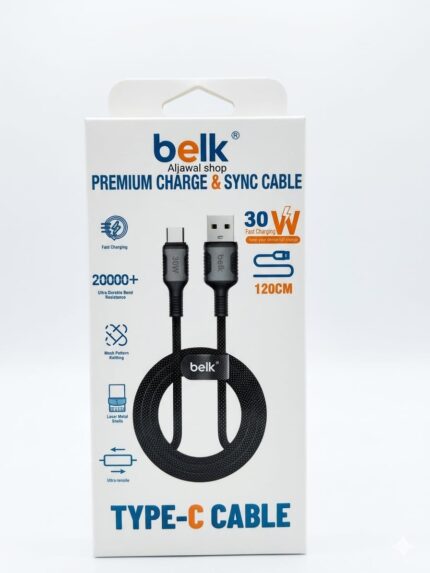 كابل BELK بقوة 30 واط من النوع C إلى Lightning، بطول 120 cm، يدعم الشحن السريع PD ونقل البيانات