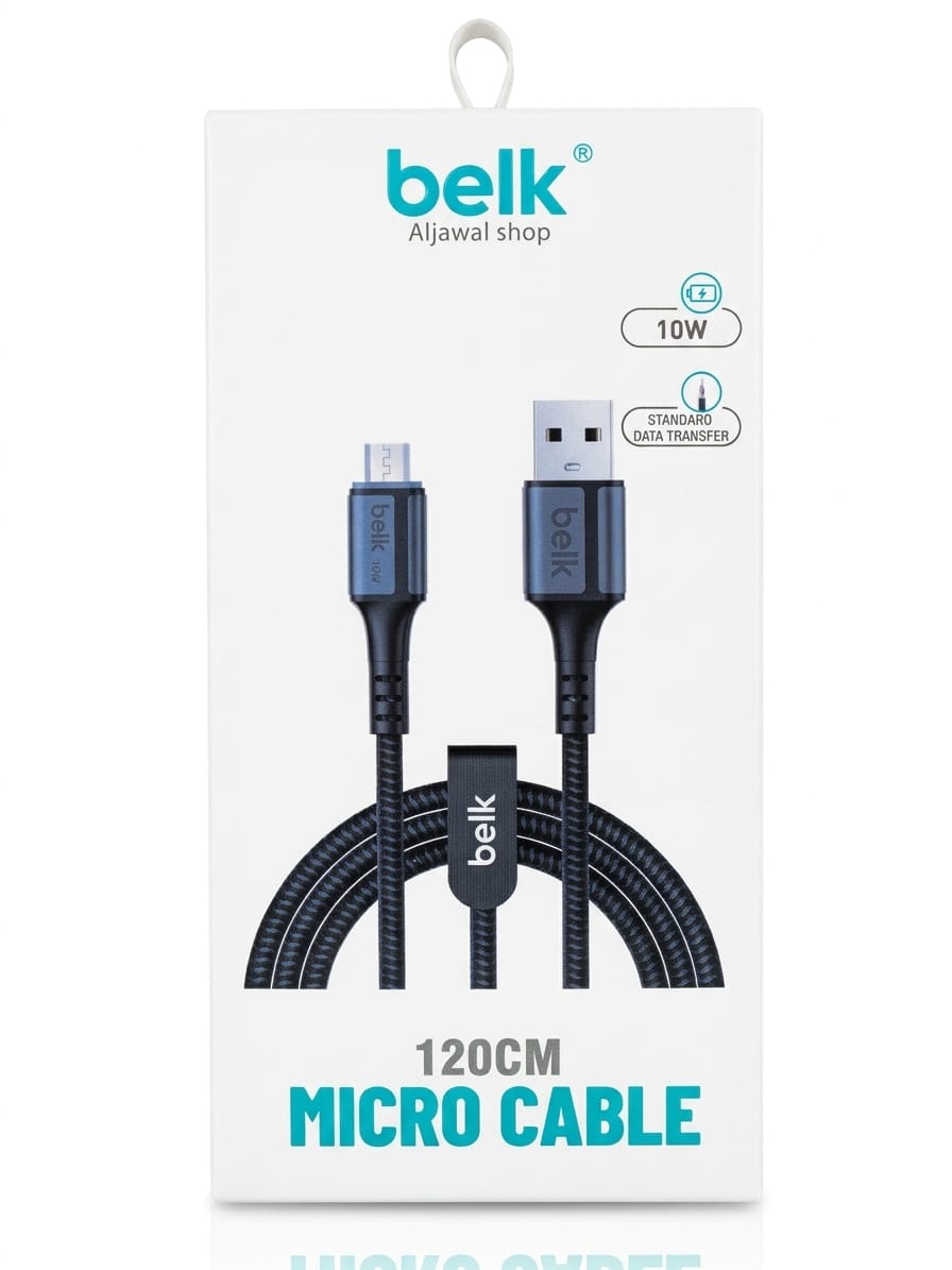 كابل شحن Belk USB A إلى Micro للشحن ونقل البيانات. مناسب للأجهزة ذات منافذ Micro USB.