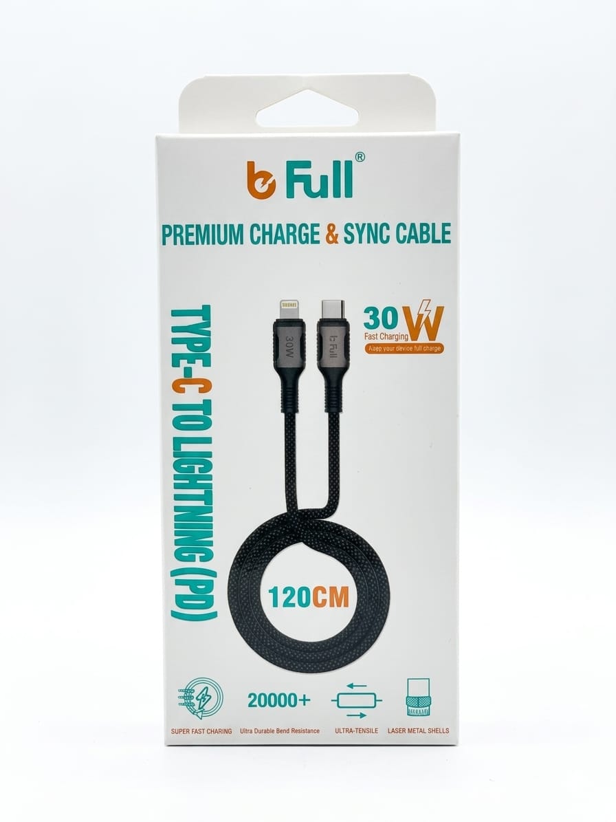 كيبل شحن سريع بي دي ايفون بي فل 1.2 م بقوة 30واط
